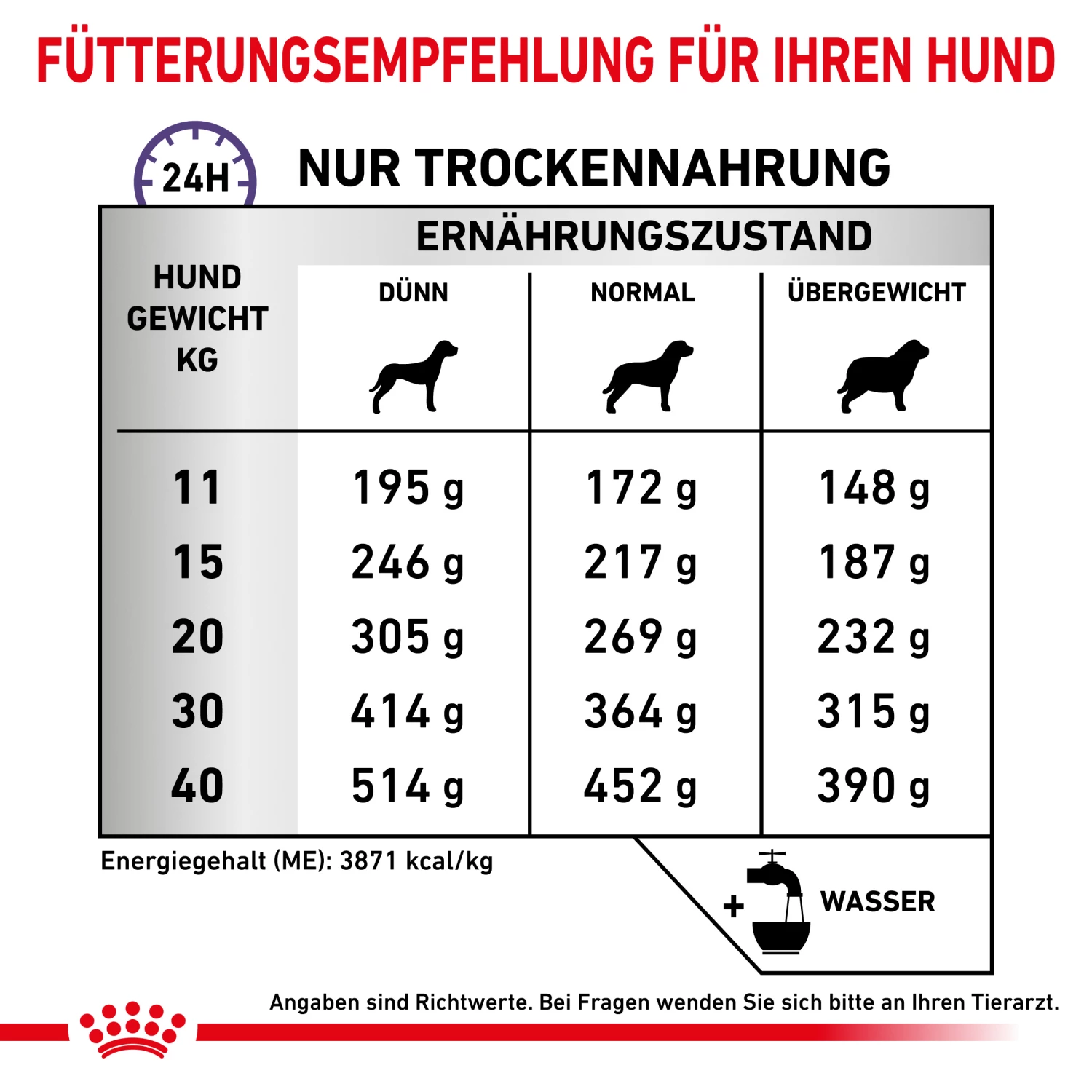 Bitte besprechen Sie mit Ihrer Tierärztin oder Ihrem Tierarzt, welche Nahrung für Ihr Tier am besten ist. Eine Nahrungsumstellung sollte sorgfältig und schrittweise über einen Zeitraum von 7–10 Tagen erfolgen. Achten Sie auf die korrekte Portionsgröße.